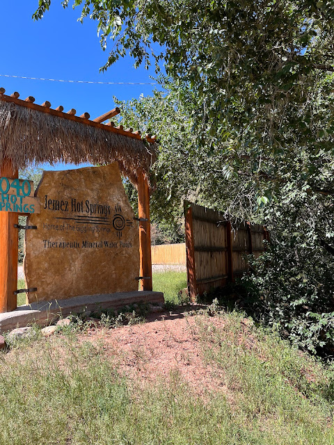 This famous Jemez enchilada was from the Farmer's market. The peach pie was eaten before I could make a photo. Both were yummy which we brought home.